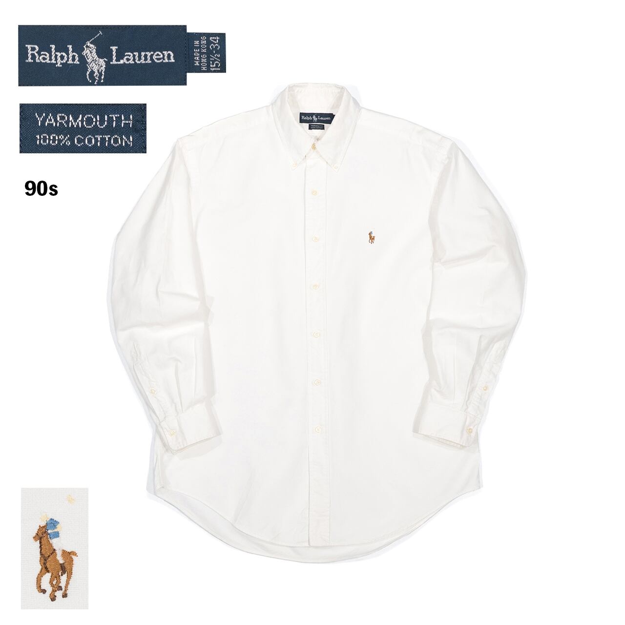 USED 90s Ralph Lauren YARMOUTH B.D. shirt white 15 1/2-34